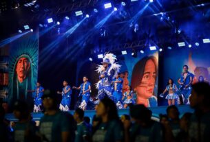 O céu ganhou tons de vermelho e a emoção tomou conta do público durante a apresentação do Boi Garantido no Arena Planeta Boi, um dos eventos mais emblemáticos na celebração da cultura do boi-bumbá.